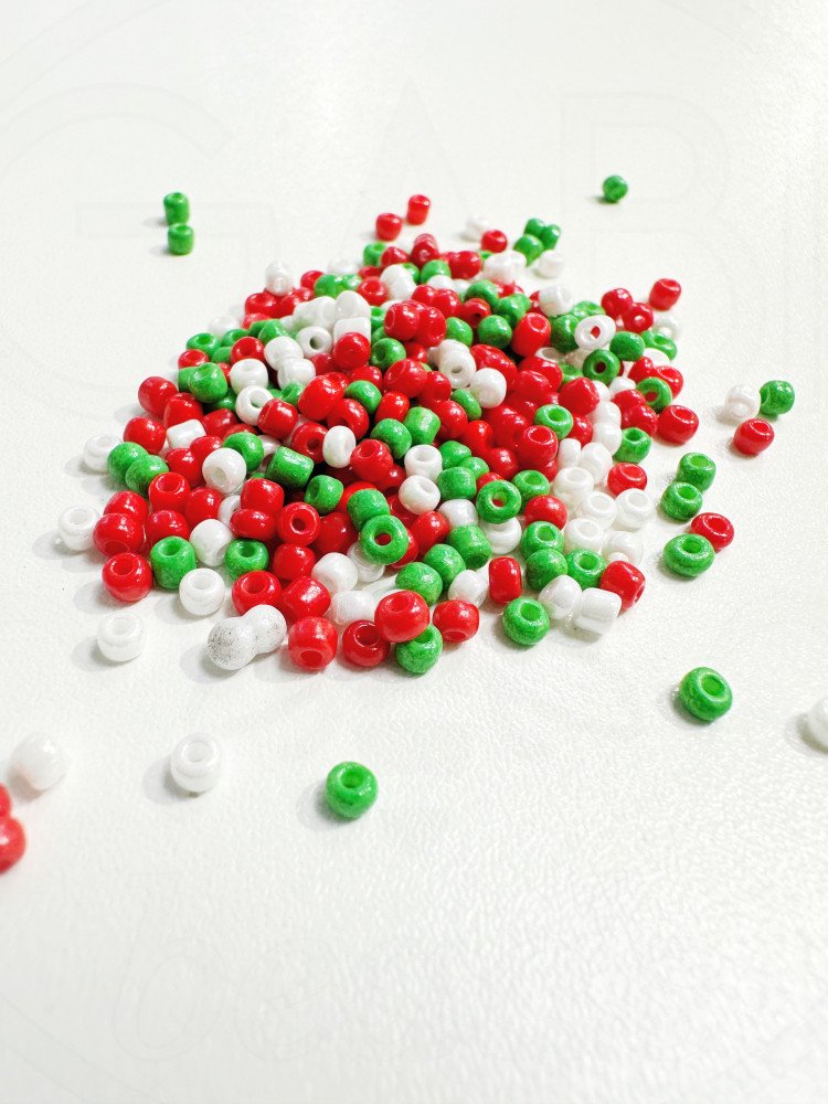 Biseris, baltos, raudonos, žalios spalvos, 3mm, 20g.