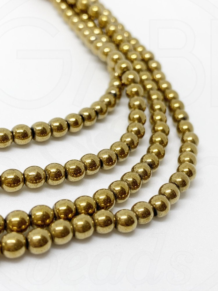 Hematitas, 3mm, aukso spalvos, 38cm juosta