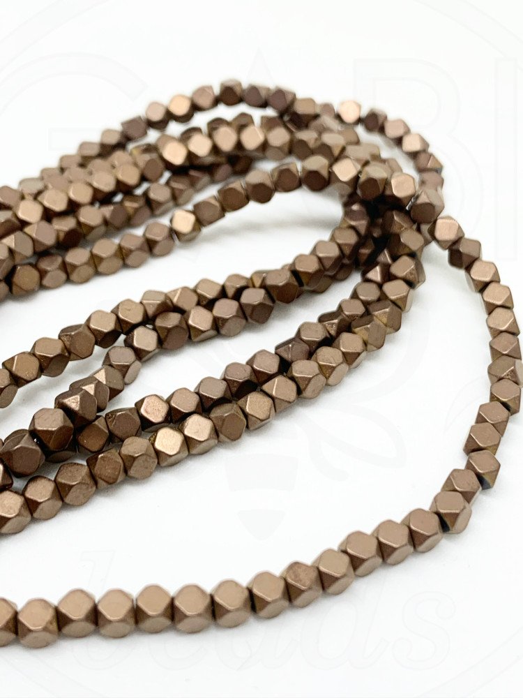 Hematitas, 3x3mm, bronzos, matinės spalvos, 41cm juosta