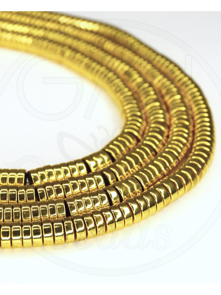 Hematitas, 4x4mm, aukso spalvos, 40cm juosta
