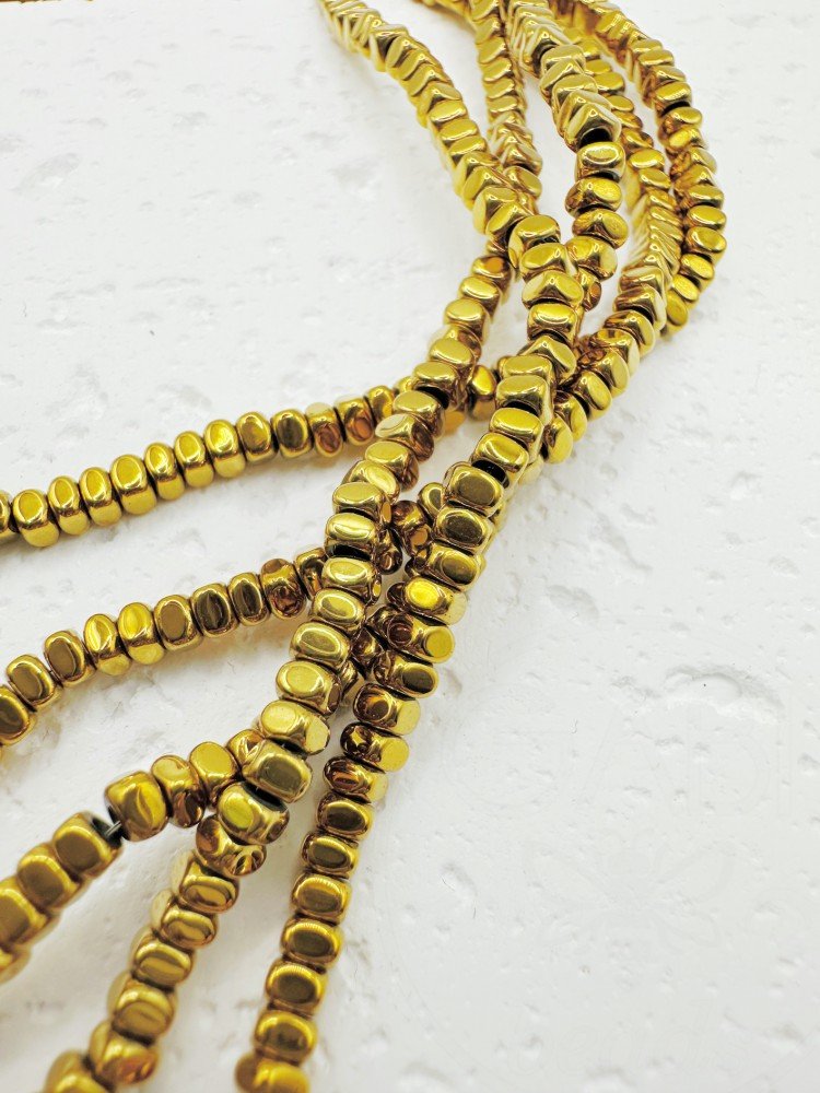 Hematitas Spalva: bronzos, matinė Dydis: 3x3mm Juostos ilgis: 41cm Prekės spalva realybėje ir nuotraukoje gali skirtis, dėl ekrano nustatymų...