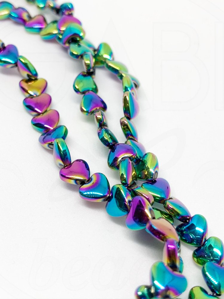 Hematitas, ŠIRDELĖS 6mm, chameleoninės spalvos, 40cm juosta