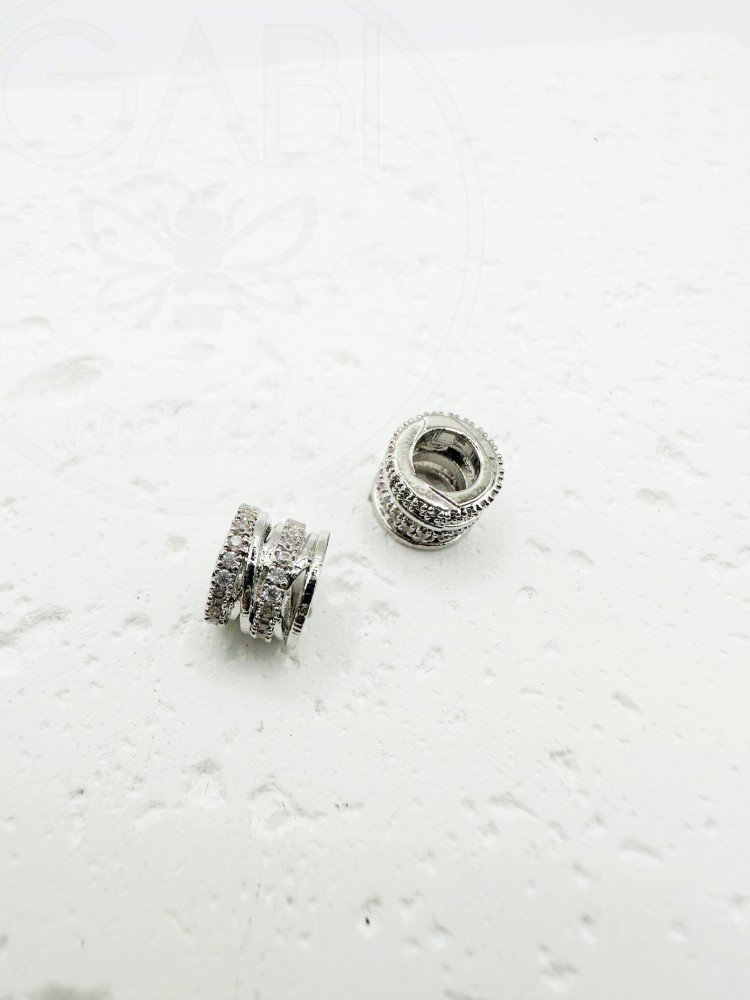 Paauksuoto žalvario intarpas su cirkonio akutėmis, sidabro spalvos, 8x6mm, 1vnt