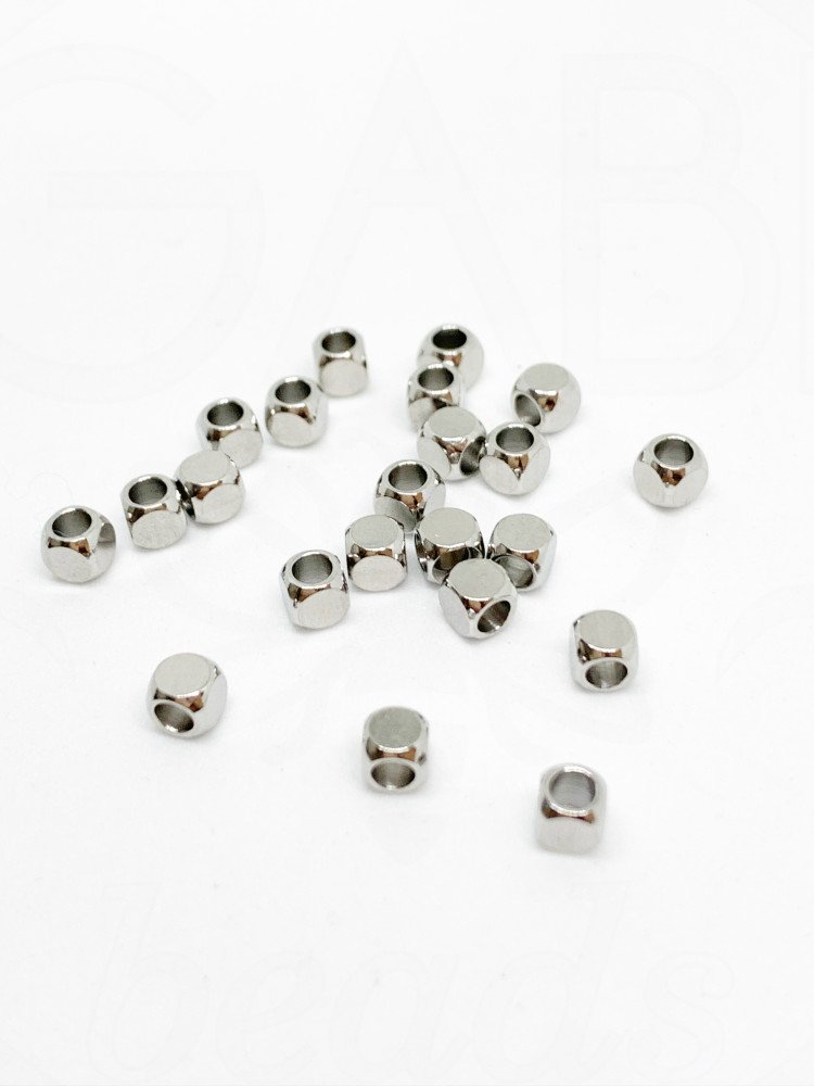 Nerūdijančio plieno intarpai, plieno spalvos, 4x4x4mm, 6vnt