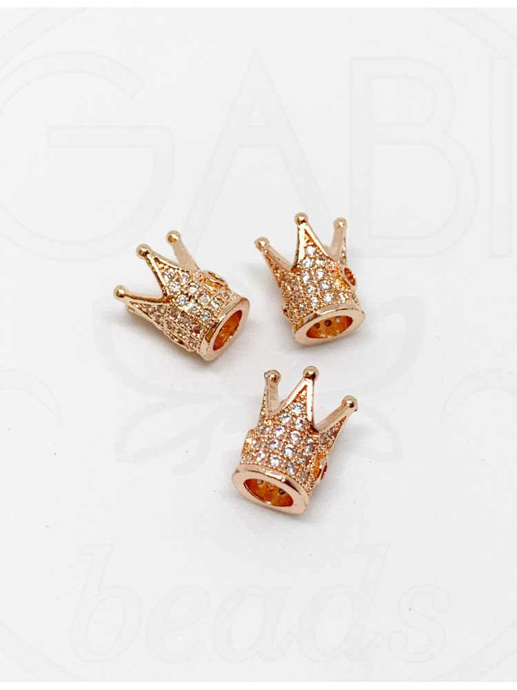 Nerūdijančio plieno intarpas karūna su cirkonio akutėmis, Rose gold spalvos, 12x10mm, 1vnt