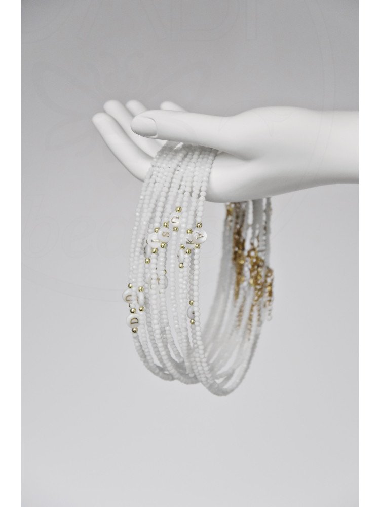 Onikso ir hematito akmenukai, nerūdijančio plieno detalės, cirkonio akutės Spalva: skaidri, švelniai rožinė, aukso Ilgis: 45-50cm Gaminys...