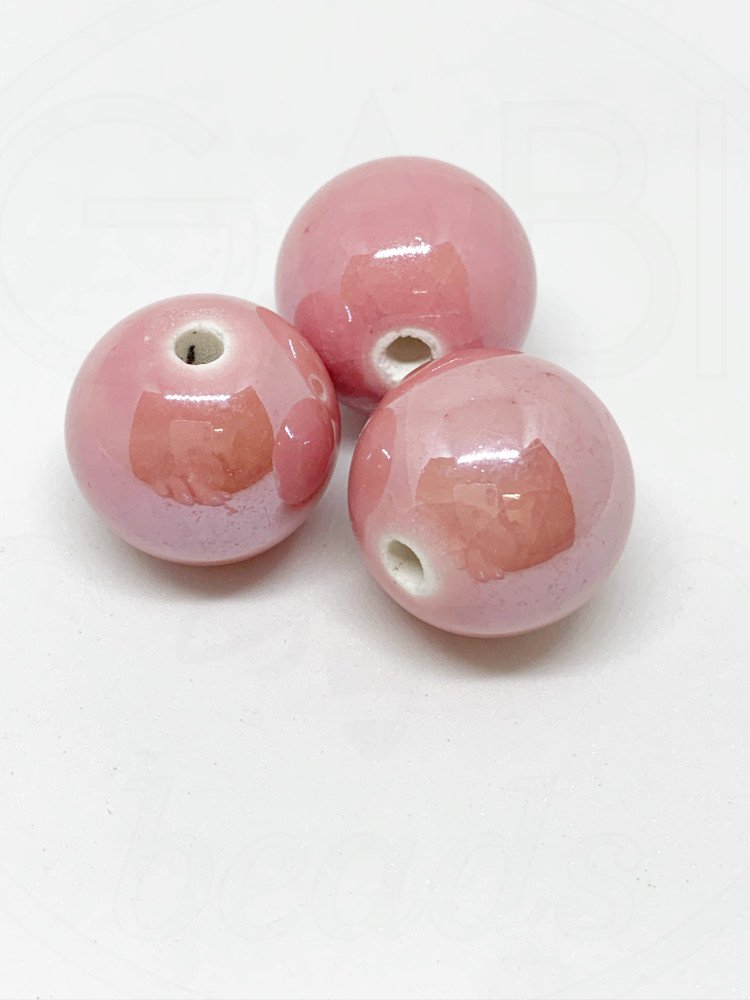 Keramikiniai karoliukai, rožinės spalvos, 18mm, 3vnt