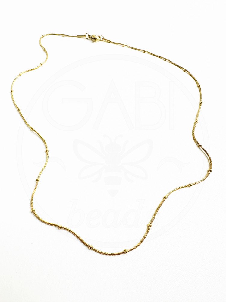 Nerūdijančio plieno grandinėlė 45cm ilgio su užsegimu aukso spalvos.