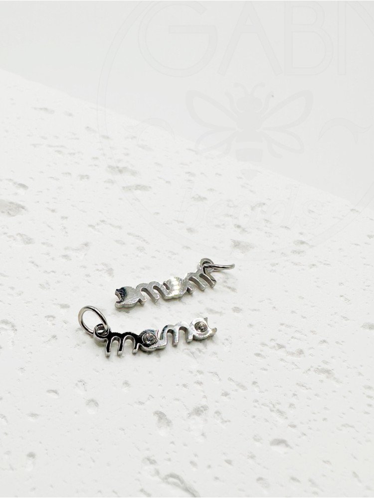 Nerūdijančio plieno pakabukas "MAMA" su cirkonio akutėmis, plieno spalvos 1vnt
