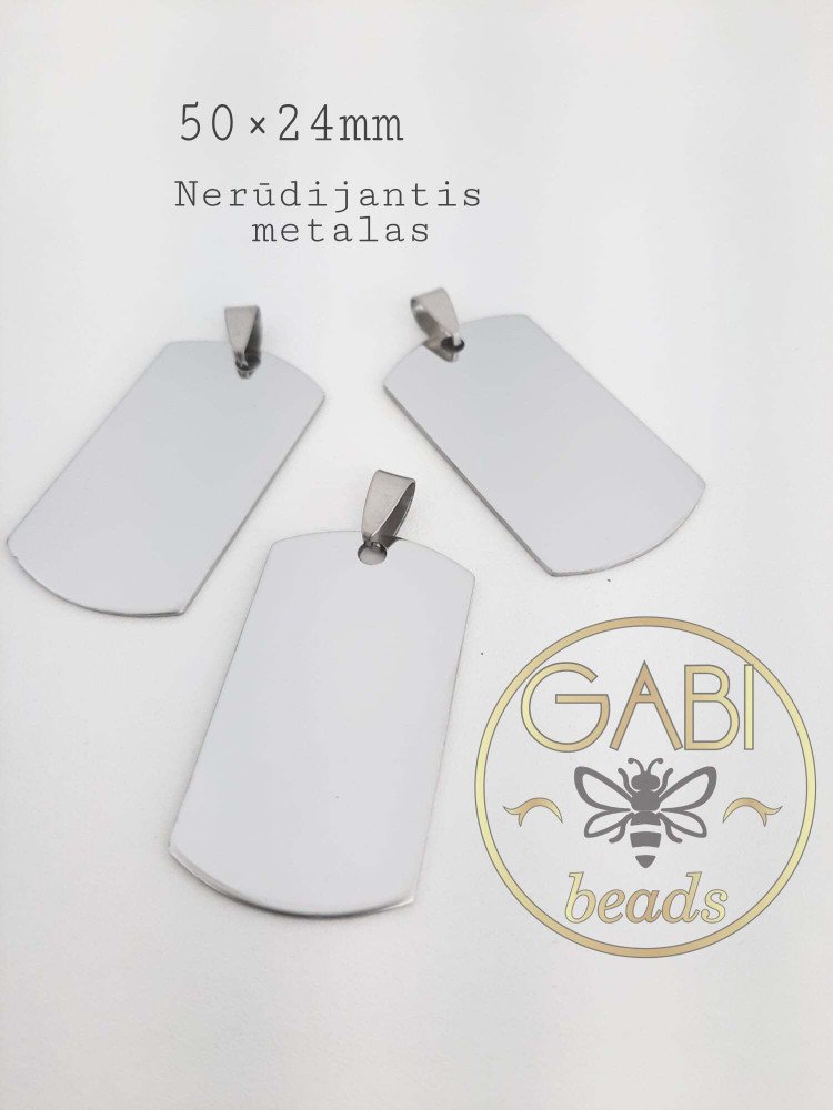 Nerūdijančio plieno pakabukas, plieno spalvos 50x24mm, 1 vnt