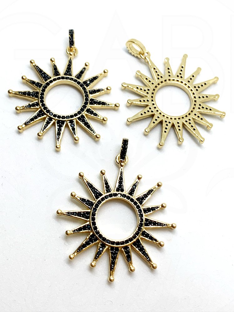 Nerūdijančio plieno pakabukas su cirkonio akutėmis, aukso, juodos spalvos, SAULĖ, 1 vnt