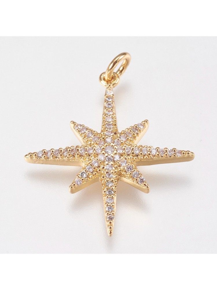Nerūdijančio plieno pakabukas su cirkonio akutėmis, aukso spalvos, 9.5x12mm, 1 vnt