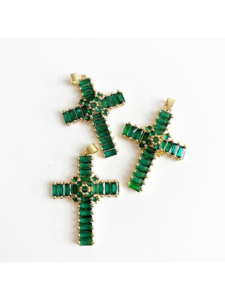 Nerūdijančio plieno pakabukas su cirkonio akutėmis, žalios, aukso spalvos, 38x27x5.5mm , 1 vnt
