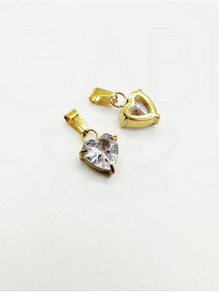 Nerūdijančio plieno pakabukas su cirkonio akute "Širdelė", aukso spalvos, 1 vnt