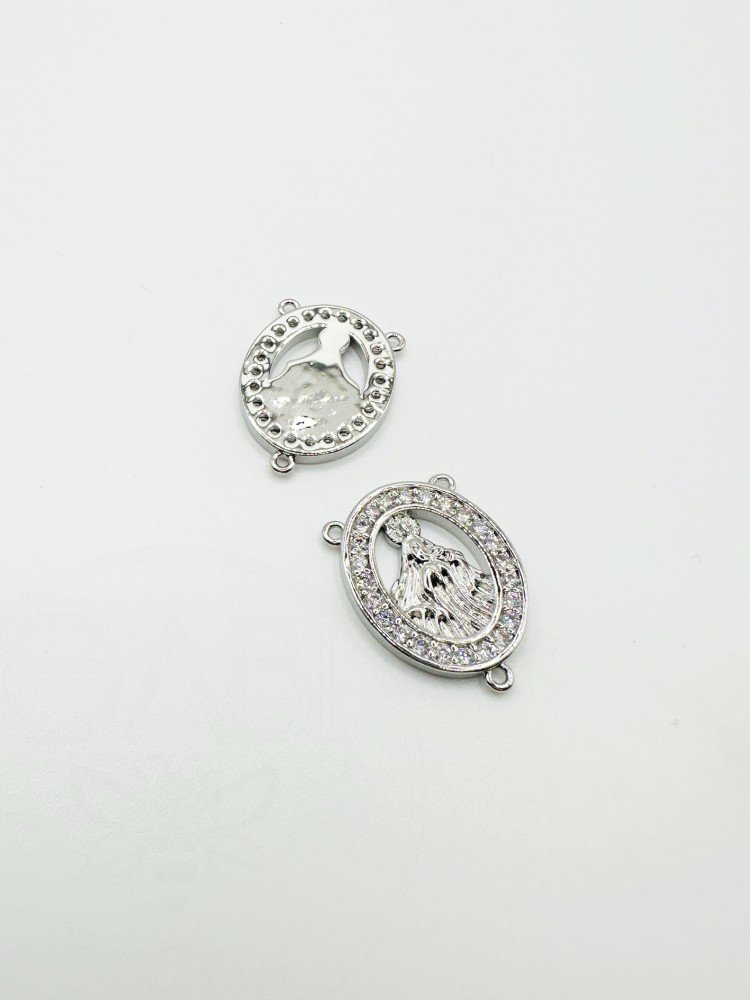 Nerūdijančio plieno pakabukas - paskirstytojas su cirkonio akutėmis, sidabro/skaidrios spalvos, 22x16x2mm 1 vnt