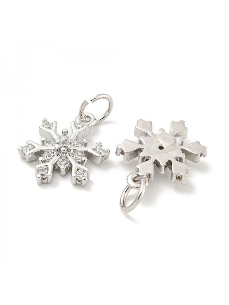 Nerūdijančio plieno pakabukas su cirkonio akutėmis "Snaigė", sidabro spalvos 14x10.5x3mm, 1vnt