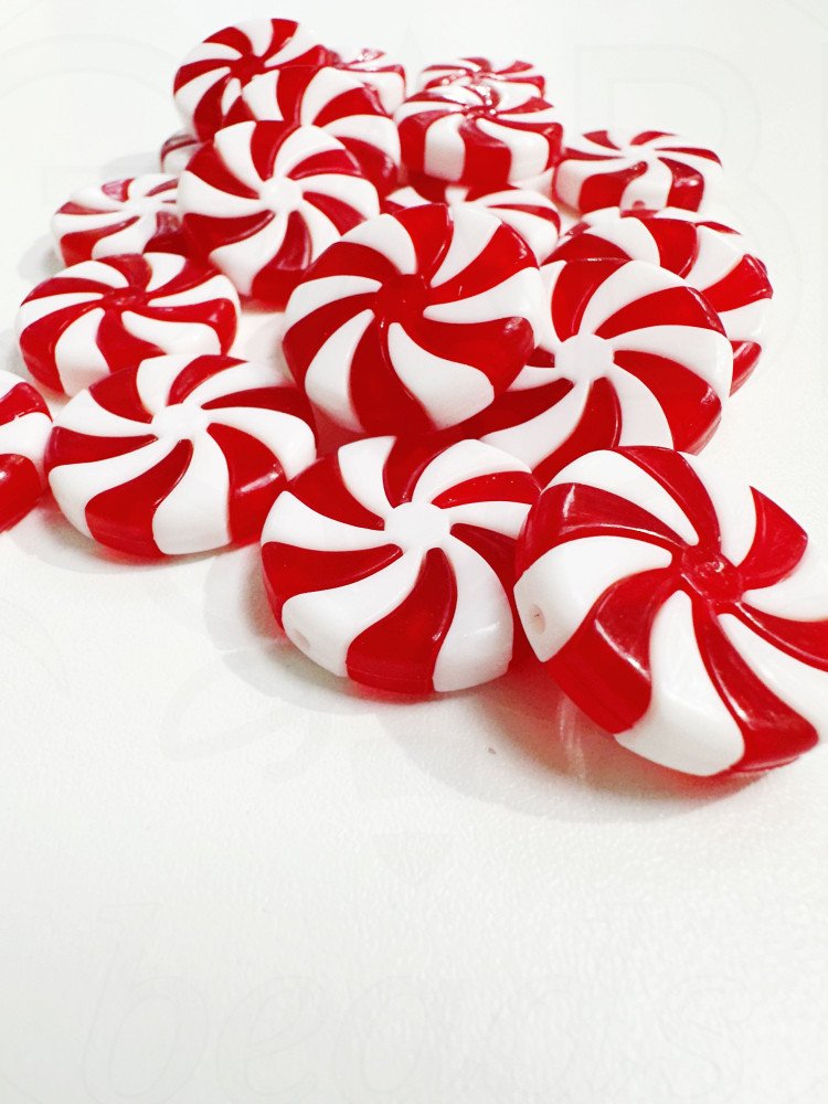 Plastikiniai karoliukai, "Saldainiukai", raudonos, baltos spalvos, 5vnt
