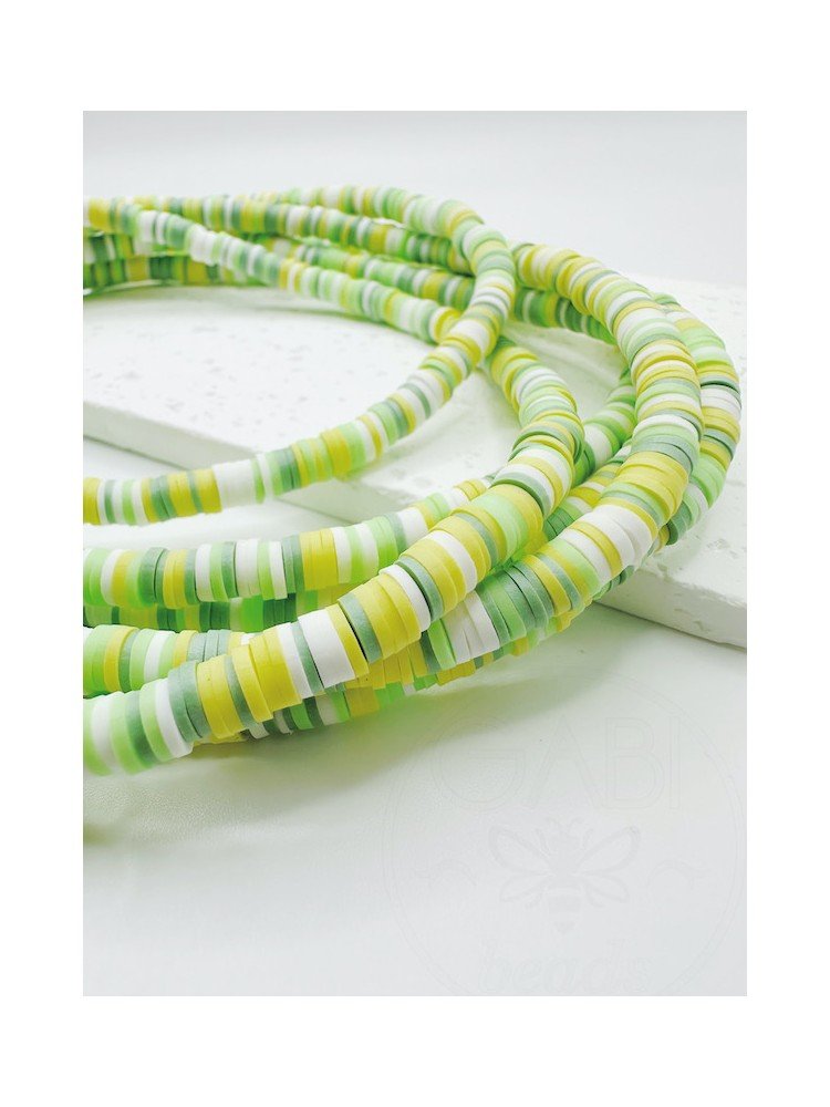 Polimerinio molio karoliukai žalios, geltonos, baltos spalvos, 6x0.5~1mm, 40cm
