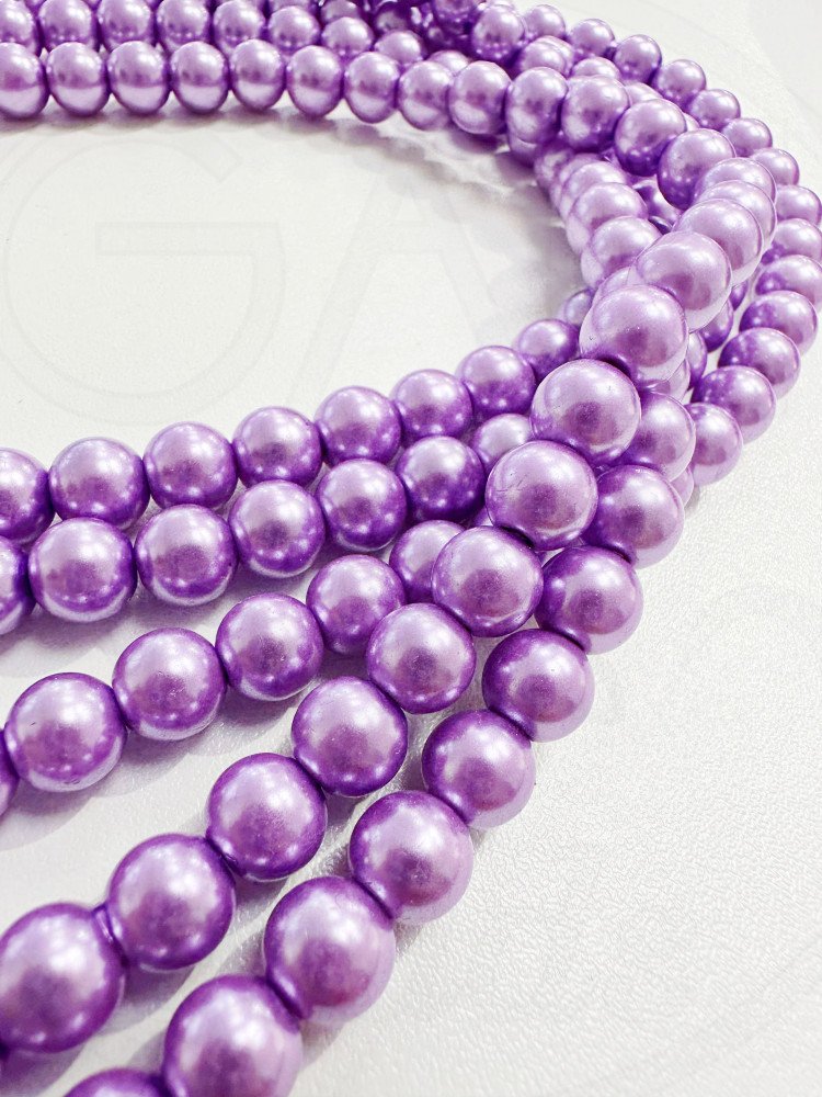 Stiklo perlai, apvali forma, violetinės spalvos, 4mm, 8mm