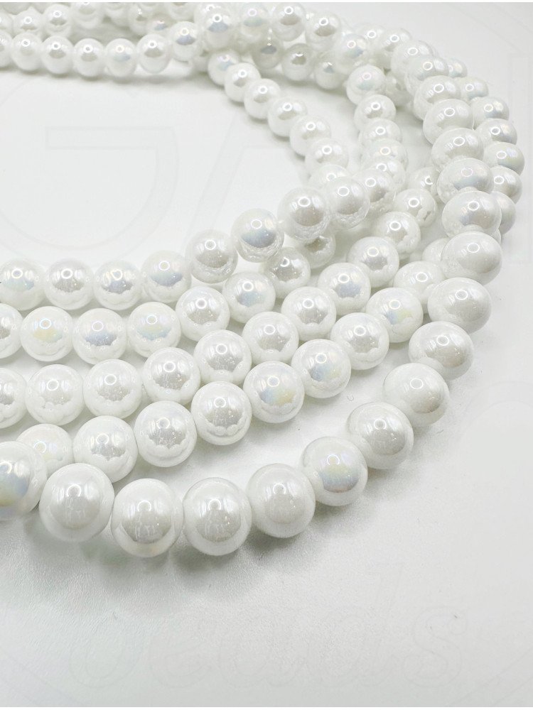 Stiklo karoliukai Spalva: balta, mėlyna Dydis: 8mm Juostos ilgis: 75cm Prekės spalva realybėje ir nuotraukoje gali skirtis, dėl ekrano...