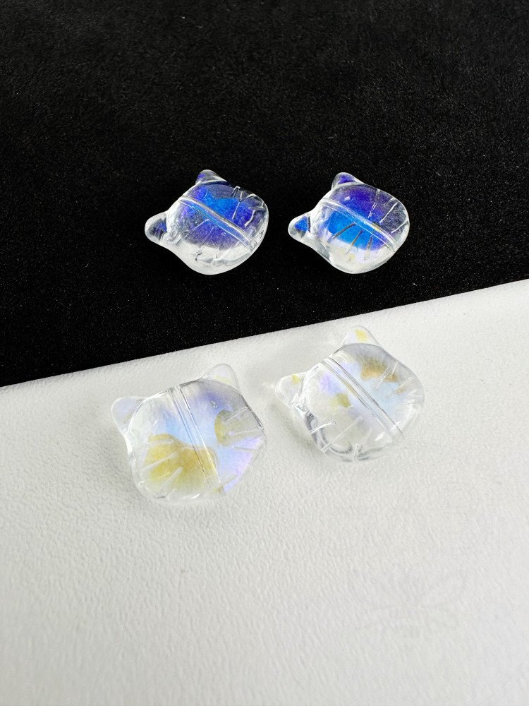Stiklo karoliukai KATĖ, skaidrios spalvos su AB danga, 12,5x14x6,5mm, 5vnt
