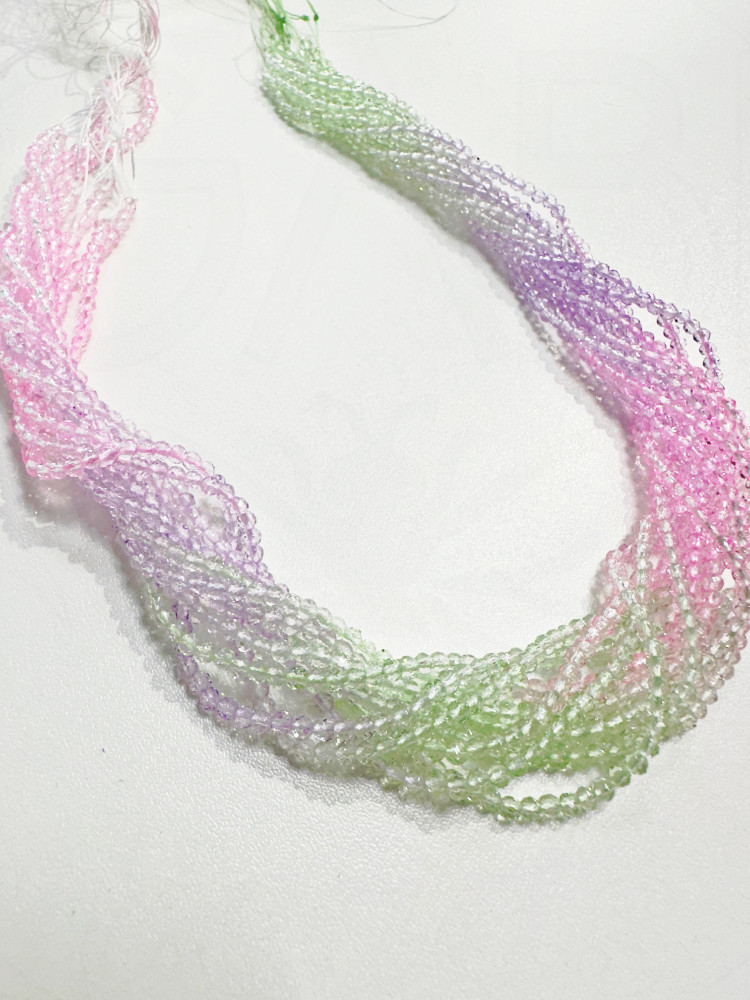 Stiklo kristalai, briaunuoti, apvalios formos, violetinės/rožinės/žalios spalvos