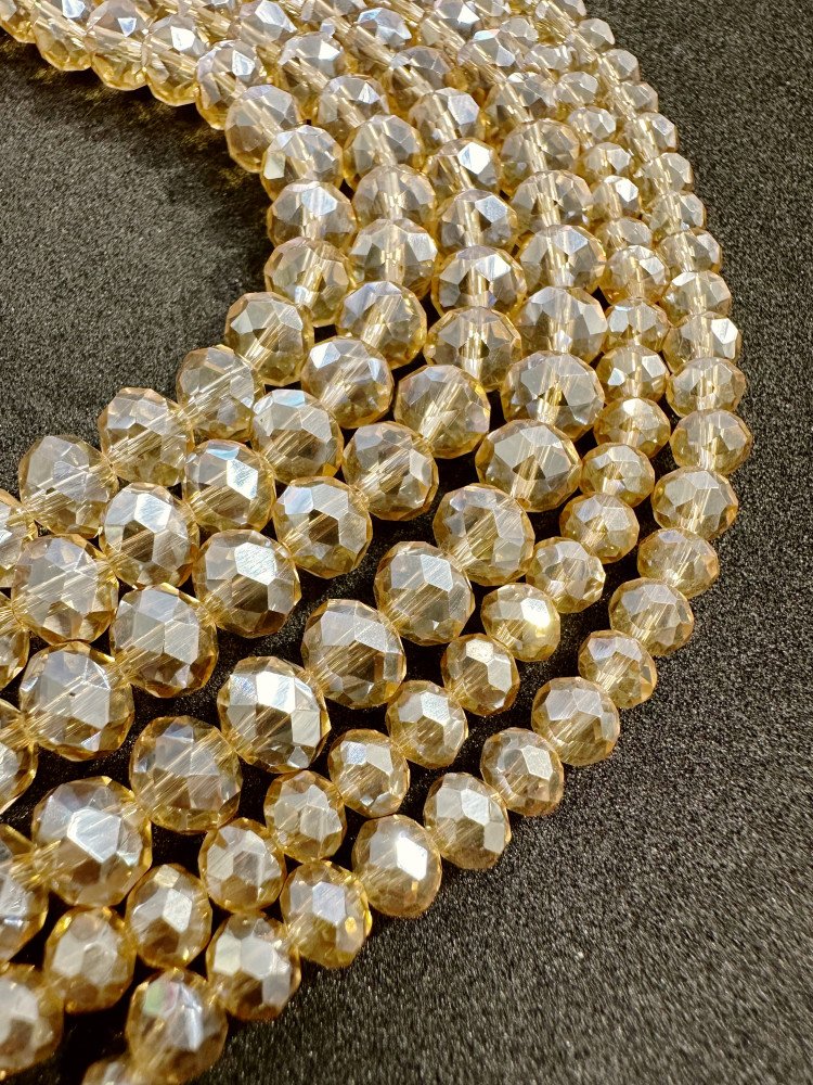 Stiklo kristalai, briaunuoti, rondelės forma, šampaninės spalvos, 3x2mm, 4x3mm, 6x4mm, 8x6mm