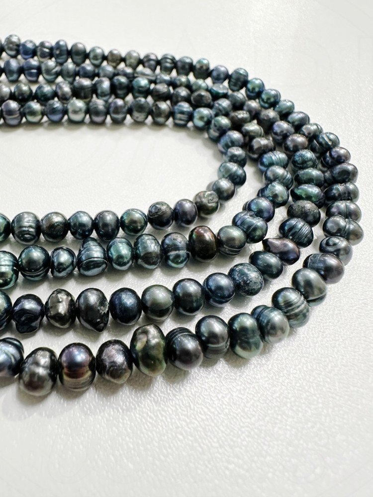 Keshi perlai Spalva: pilka Dydis: 9~14x4~8x3~6mm Juostos ilgis: 39cm Prekės spalva realybėje ir nuotraukoje gali skirtis, dėl ekrano...