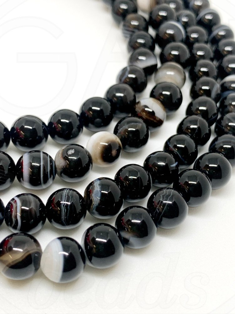 Agatas, 10mm, juodos spalvos, 38cm juosta